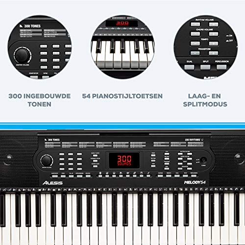 Specification: Alesis Melody 54 Draagbaar Elektronisch Keyboard Piano met 54 Toetsen, Ingebouwde Luidsprekers, 300 Instrumentgeluiden…