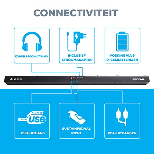 Specification: Alesis Recital – 88-toeten Elektronische Digitale Piano met Semi-Gewogen Toetsen in Volledige Grootte, 5 Klanken, 2…