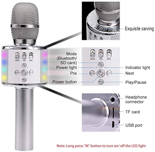 Regelbaar dynamisch ledlicht – muziek ~ 48 kleurrijke ledlampen van de Bonaok-microfoon flikkeren in het ritme. Hoog volume, helderder licht. Als je lang op “M” drukt, wordt het ledlicht weergegeven/verborgen. Zo grappig.