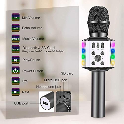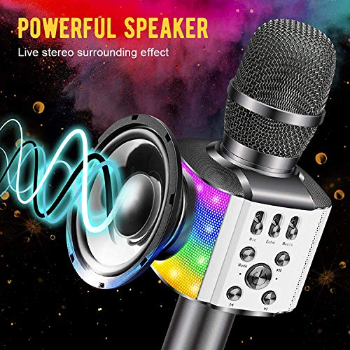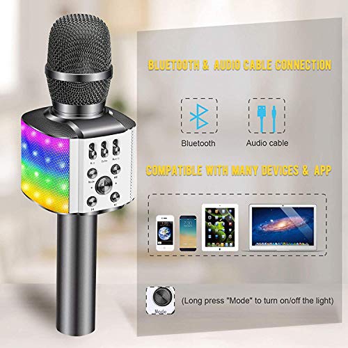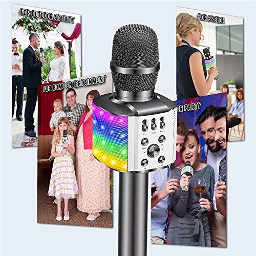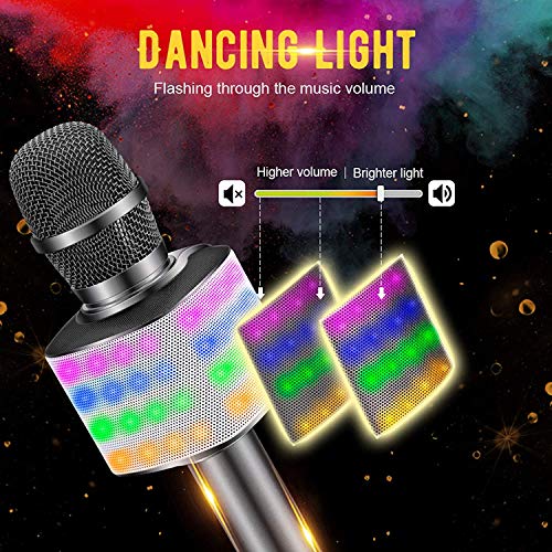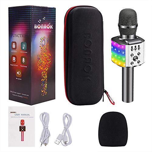 Specification: BONAOK Karaoke Microfoon voor Kinderen, met Knipperende Kleurrijke Ledlampen,Draadloos Draagbaar 4-in-1 Bluetooth…