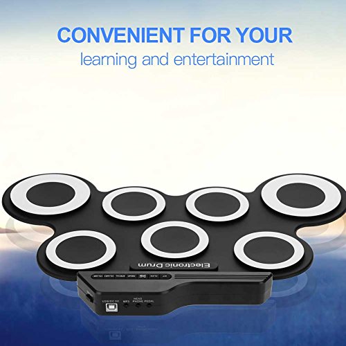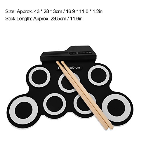 Specification: FastUU E-drumset, draagbare elektronische roll-up-drum, roll-up-drum-oefenpad, midi-drum-kit met USB-kabelpedaal-stick…