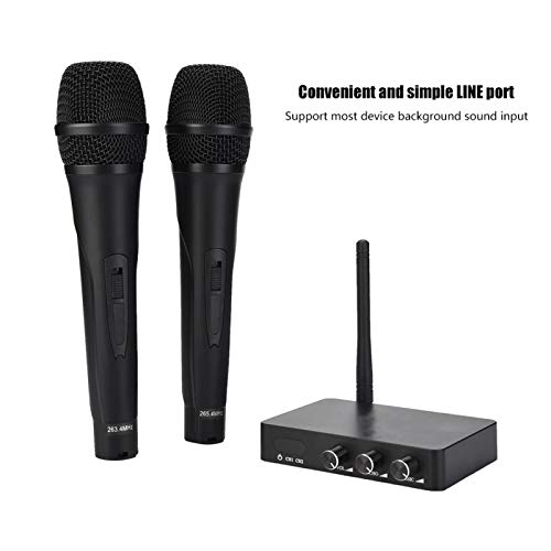 【Breed scala aan toepassingen】 Diverse interface op de achterkant van de ontvanger stelt u in staat verbinding te maken met uw dvd-speler, PA-systeem, luidspreker voor elke situatie, ideaal voor conferenties, thuiskaraoke, vriendenfeest, kerk, klaslokaal, bruiloft en meer .