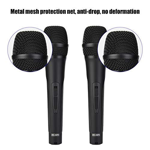 【Geluid nauwkeurig vastleggen】 Dubbel draadloos handmicrofoonsysteem biedt een eenvoudige oplossing om de ware toon van u vast te leggen via de unidirectionele microfoon en deze draadloos naar de luidspreker te sturen via betrouwbare signaaloverdracht met de ontvanger met meerdere poorten.