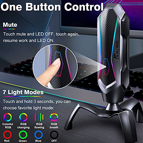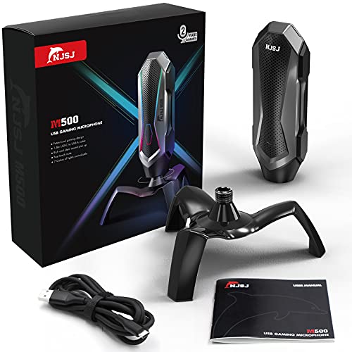 Specification: NJSJ USB Microfoon, Computer spel microfoon,voor pc, PS4, Mac, met RGB led effectlampen, mute-schakeling…